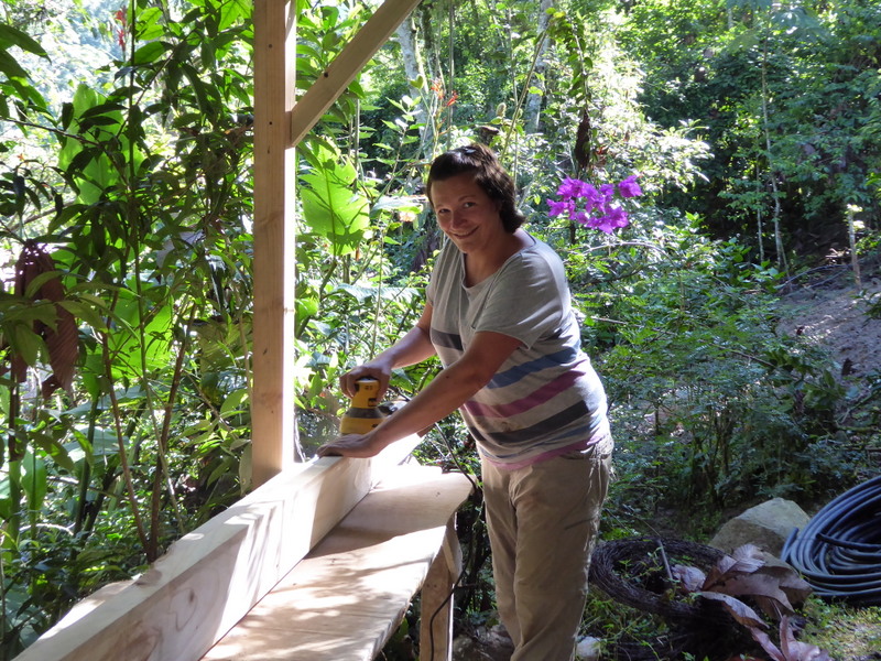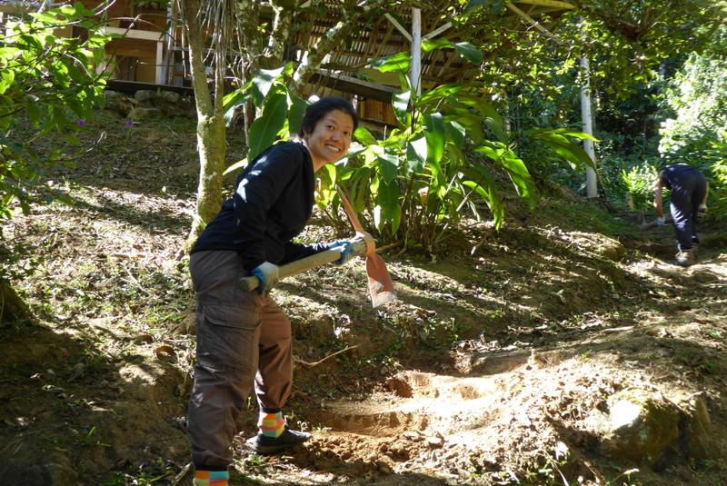 Justus from Germany was busy building steps into some of the trails, transplanting seedlings, and helped dig trenches for the grey water drain field in the yard. He used his muscle power to help some visiting tourists who were staying up at the remote Gavalon cabin. The gas tank for their stove was empty and Justis gallantly came to the rescue and hiked up the mountain with a very heavy replacement tank on his back.