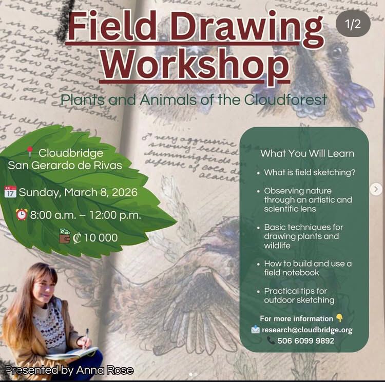 Once again, it has been a busy month, at the moment we have a great group of researchers and volunteers on-site, and we also hosted a nature-drawing workshop with Anna-Rose, which was a great success! This is in addition to the day visitors, guests in our rental casitas, and participants in our guided tours, which we always recommend to people who would like to learn more about the wonderful forest they are visiting! We also gave an educational tour to students of Ecological Restoration from Pitzer College, we are grateful to be included regularly as a complement to the lowland forest where the students spend most of their time.